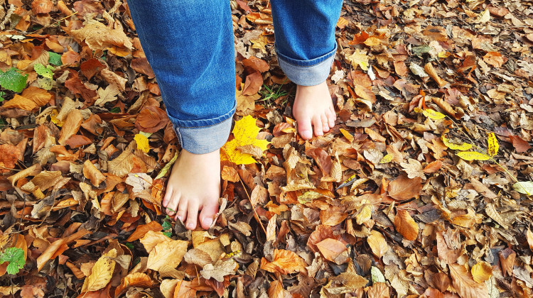 Wusstest Du, dass feuchtes Laub hervorragend leitet? Mein Lieblings-Herbstritual: Barfuß durch Laubhaufen stapfen! Die Feuchtigkeit verstärkt die Erdung, das Rascheln macht gute Laune, und die Bewegung bringt den Kreislauf in Schwung.
